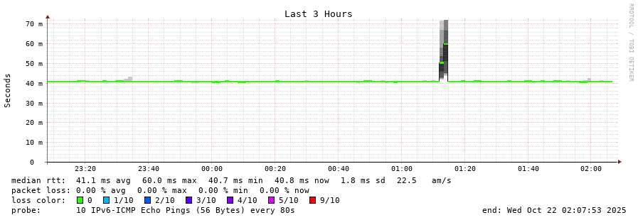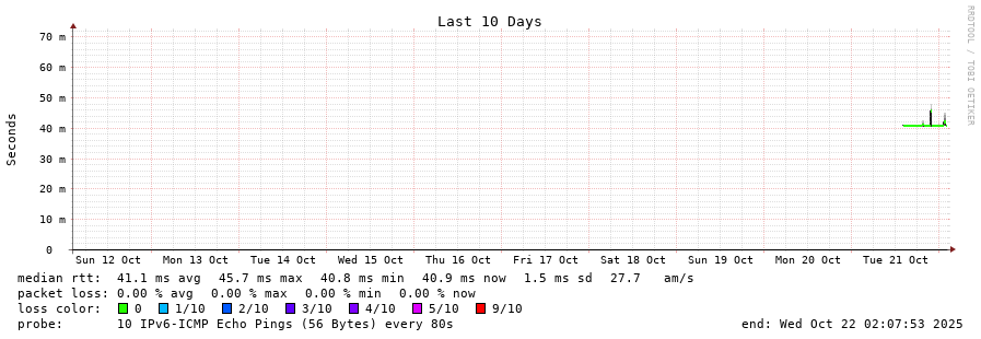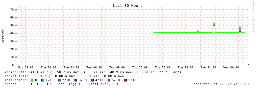 traceroute to 2a0b:2f00:0:234::151 (2a0b:2f00:0:234::151), 30 hops max, 80 byte packets - Generated at 2025-10-21 20:30:01