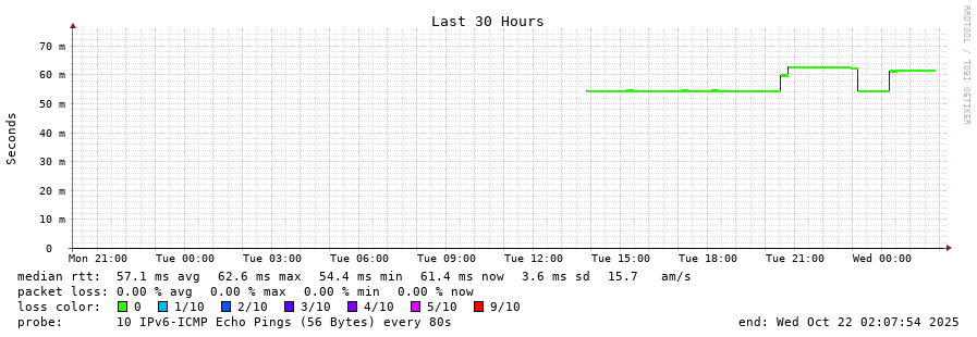 traceroute to 2001:67c:10:1102::11 (2001:67c:10:1102::11), 30 hops max, 80 byte packets - Generated at 2025-10-21 20:30:01