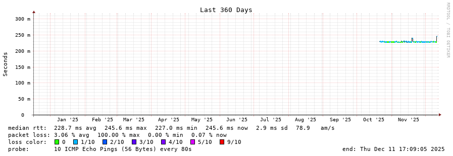 11 > 200.25.57.255 (200.25.57.255) [AS7195] 206.216ms 205.572ms 205.570ms