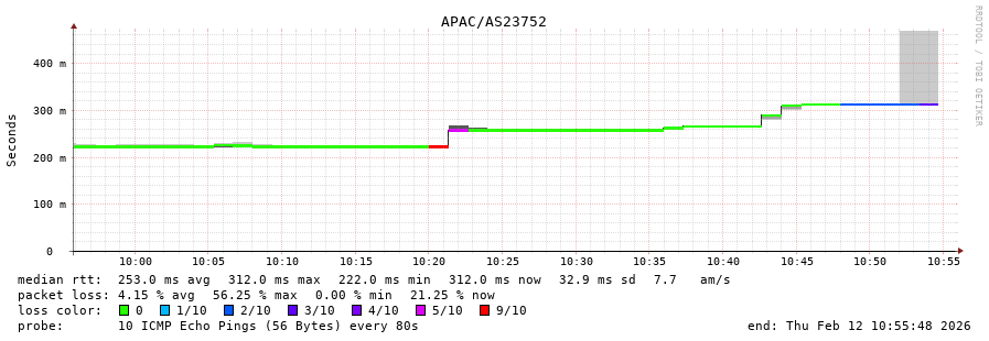 43. Median RTT 0.282 seconds